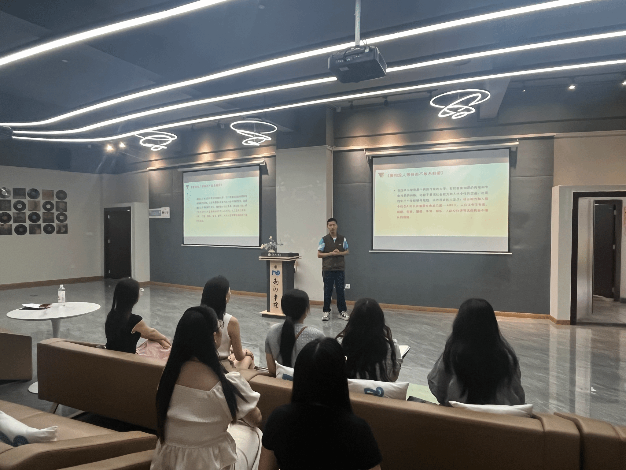 杨老师首先带领全体教师梳理了董事长教育理念的核心要点。董事长强调,当下教育存在“成绩至上”的单一评价体系问题,这导致学生焦虑抑郁、教育短视化。他引用北大林小英教授的观点,指出这种机制将教育沦为“投资前18年,透支后半生”的行为,呼吁教育应追求“低开高走”,避免过早耗尽学生的热情与生命力。“教育的本质是帮助学生找到热爱,重燃对生活的激情。”杨老师着重强调了董事长提出的教育使命。贵州考生陈明焕为追寻摇滚梦想,放弃传统升学路径选择晋中信息学院的案例,充分证明了“热爱可抵岁月漫长”的教育理念。董事长倡导的“四位一体双院制”个性化教育模式,正是致力于培养学生在AI时代的审美、创新、情感等机器不擅长领域的能力,让学生在“友好地为所欲为,放肆地野蛮成长”中实现自我价值。