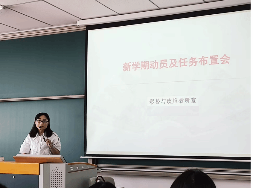 会议伊始,新旧教师相互介绍认识。接着,王郡老师回顾总结了上学期工作。在学校党委、学院的坚强领导下,形势与政策教研室坚持以习近平新时代中国特色社会主义思想为指导,深入学习贯彻党的二十大精神和习近平总书记关于教育的重要论述,融合学校发展战略布局,各项工作协同发展。