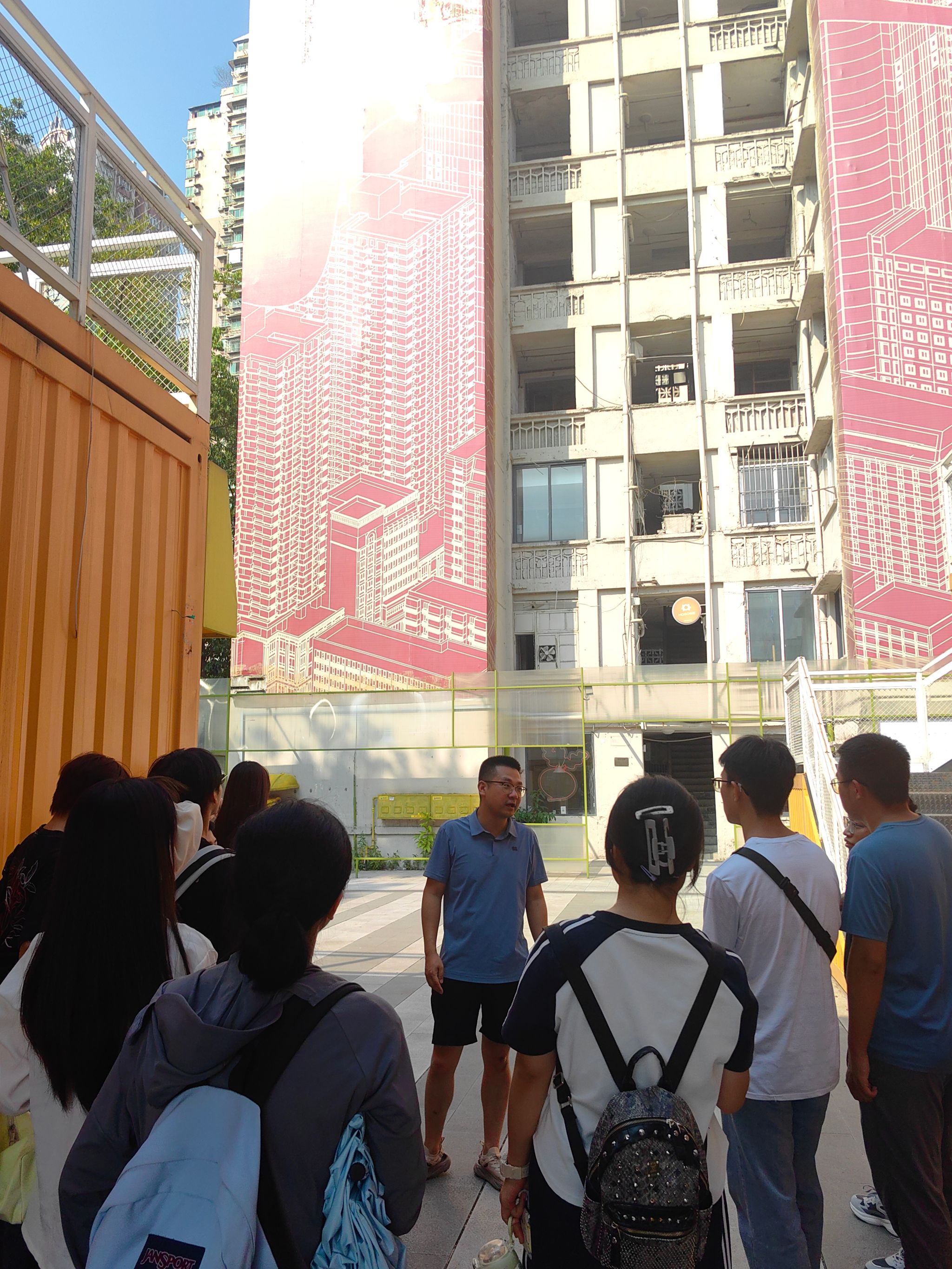 进入民主村社区,李老师首先介绍起了重庆的发展历史,并重点为同学们介绍了国营建设机床制造厂为新中国的国防工业和经济建设作出了巨大贡献。紧接着李老师谈到,民主村社区是原国营建设机床厂配套家属区,曾是一个典型的老旧社区,房屋破旧,环境脏乱。然而,自2021年九龙坡区启动民主村片区城市更新项目以来,这里经历了翻天覆地的变化。通过对老旧小区进行微改造、巧利用,既保留了历史印记,又完善了居住功能,规划建设了功能服务区、市井烟火区等区域,使得社区环境焕然一新。