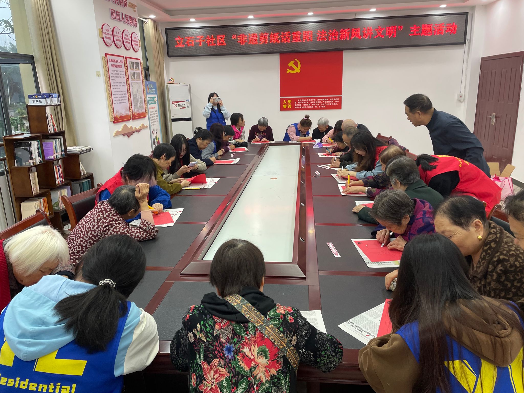 为弘扬中华民族尊老敬老的传统美德,关爱社区老人生活,传递社会的温暖与关怀。恰逢重阳佳节来临之际,2024年10月11日上午9点,马克思主义学院联合鱼城书院师生齐聚合川区立石子社区,由李欢、李阳、曾林老师组织开展了一场特别的“行走的思政课”,旨在通过普法与剪纸,将志愿服务的温暖送给社区老人。