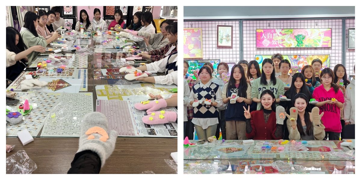 接着同学们讲解各自家乡立冬习俗。不同地域的习俗在这里碰撞、交融,现场氛围热烈,欢声笑语拉进了同学们的距离,让大家感受到文化多元之美。而后,同学们开启了制作手套的环节,在温暖与欢乐中,心灵手巧的同学们尽情发挥自己的创意,精心制作,一针一线都倾注了热情。这些手套,不仅是抵御冬日寒冷的物件,更是大家在立冬这个特殊节气里对温暖的独特诠释。