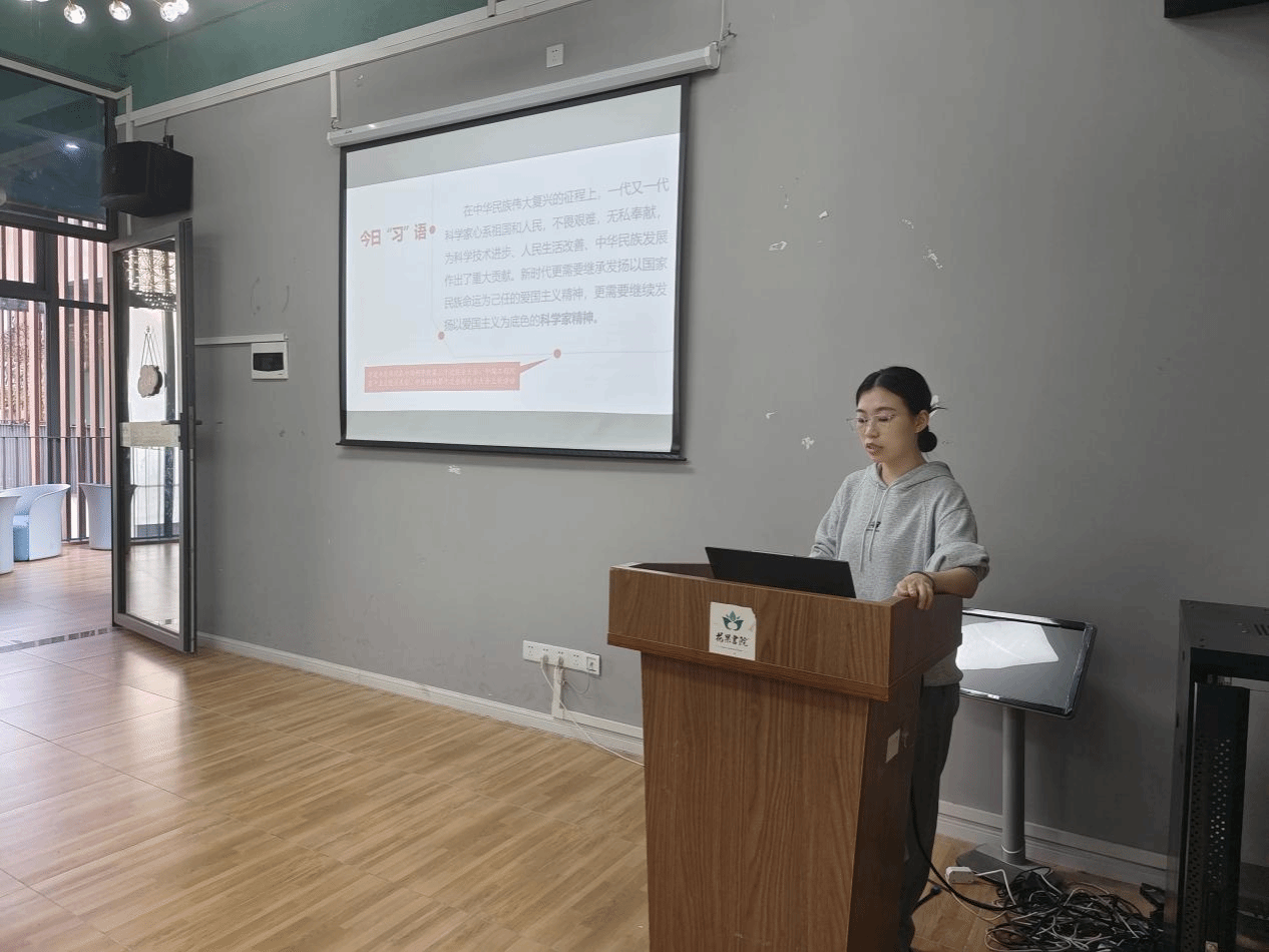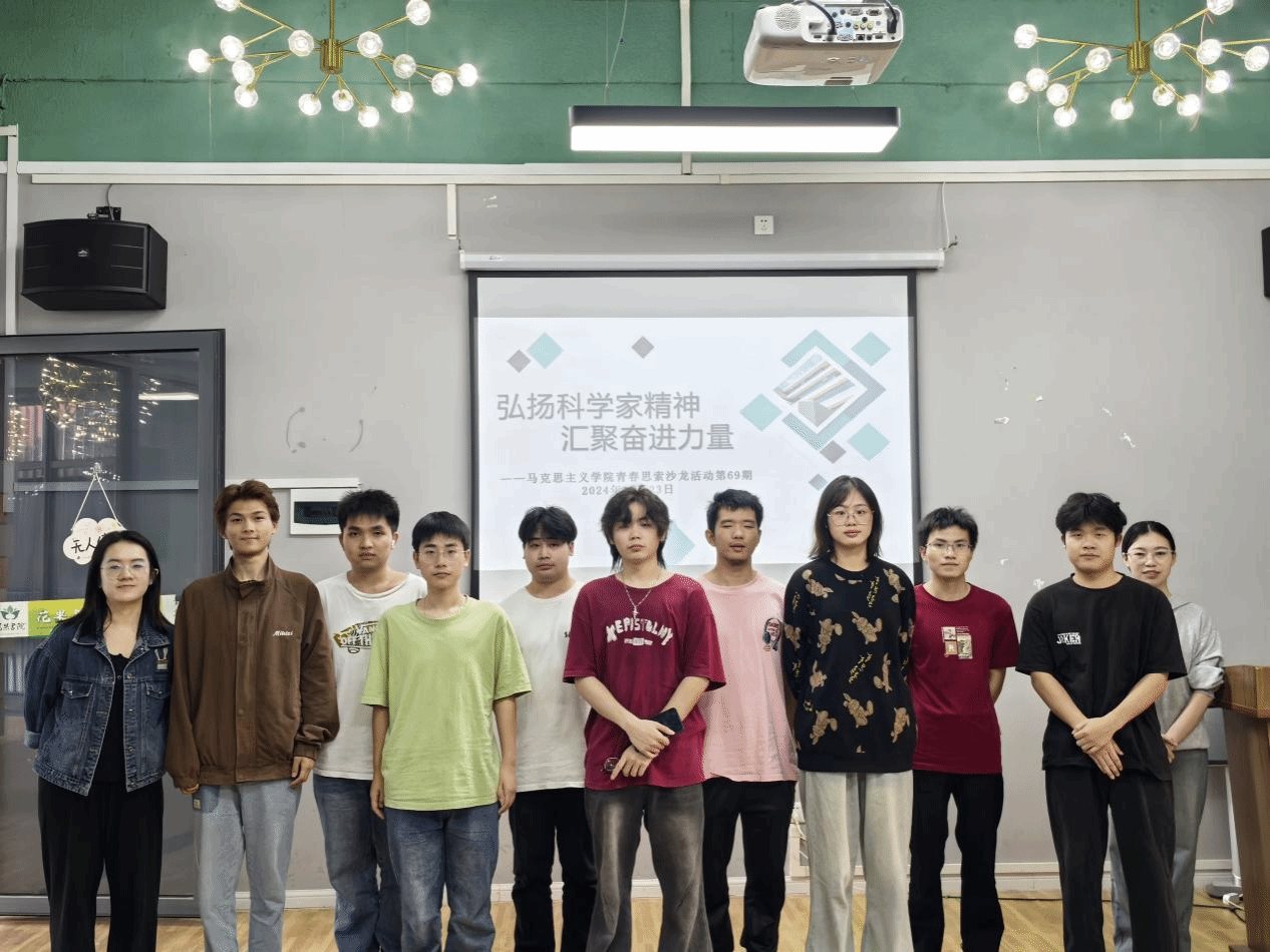习近平总书记指出:“ 在中华民族伟大复兴的征程上,一代又一代科学家心系祖国和人民,不畏艰难,无私奉献,为科学技术进步、人民生活改善、中华民族发展作出了重大贡献。新时代更需要继承发扬以国家民族命运为己任的爱国主义精神,更需要继续发扬以爱国主义为底色的科学家精神。”为引导广大学生深刻理解科学家精神,激发他们投身科学事业的热情与决心,2024年10月23日下午,马克思主义学院“概论”课教研室于花果书院多功能活动室举办第69期“青春思索”主题沙龙活动——“弘扬科学家故事,汇聚奋进力量”。本次活动由马克思主义学院“概论”课教研室教师李建春、张慧婷组织,李建春老师担任活动主持,部分学生代表参加。