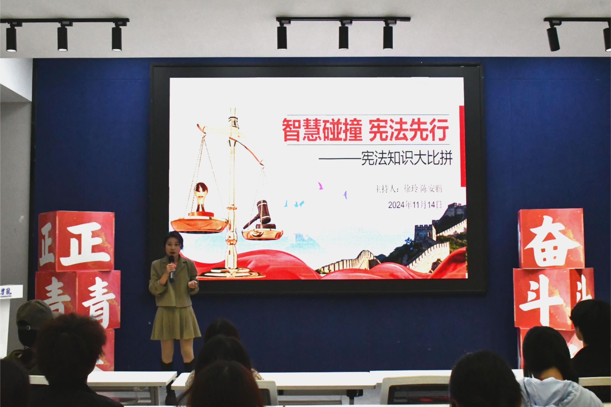 此次活动旨在通过趣味横生的问答形式,将宪法知识融入日常生活,让宪法精神在青年学子心中生根发芽,比拼内容涵盖了宪法的基本原则、公民的基本权利与义务、国家机构的设置与职权,以及宪法与日常生活的紧密联系等多个方面,旨在全面考察并提升同学们的宪法认知水平和法治实践能力。活动现场气氛热烈,充分展现了青年学子对宪法知识的热爱和追求。