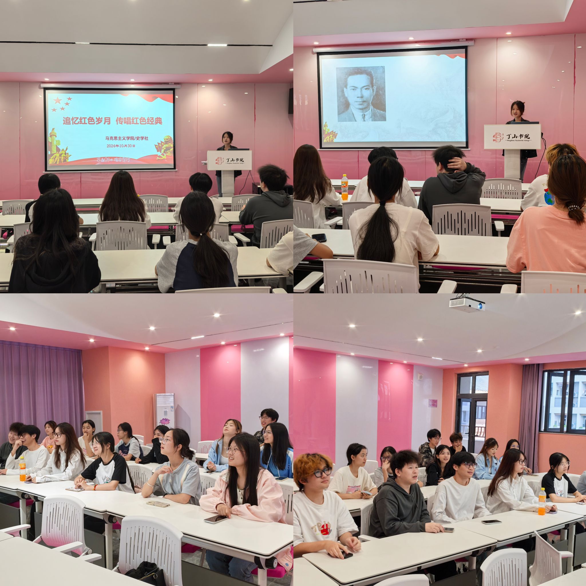 为弘扬党的优良传统和革命精神,厚植大学生的爱国情怀,进一步增强大学生的历史责任感和使命感,2024年10月30日,马克思主义学院指导史学社在丁山书院白羊座·演讲培训室开展了“追忆红色岁月,传唱红色经典”实践教学活动。本次活动由马克思主义学院马克思主义基本原理教研室向娇、黄必琼两位老师主持,来自綦江校区不同专业的15名学生参与。