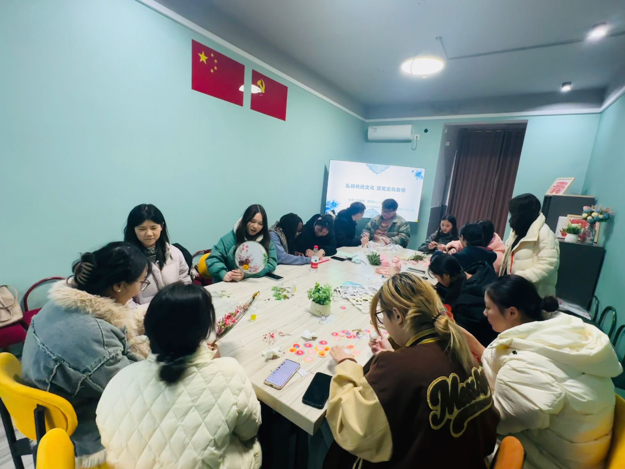 为增强理论学习的实践性和体验感,活动特别设置了传统文化技艺体验区,通过非遗金箔画制作、中国风团扇设计、金鱼花灯组装等互动项目,让参与者亲身体验传统文化的独特韵味与精湛技艺。现场气氛热烈,师生们沉浸于传统文化的海洋,通过动手实践,深化了对传统文化的理解与感悟,实现了理论与实践的有机统一。