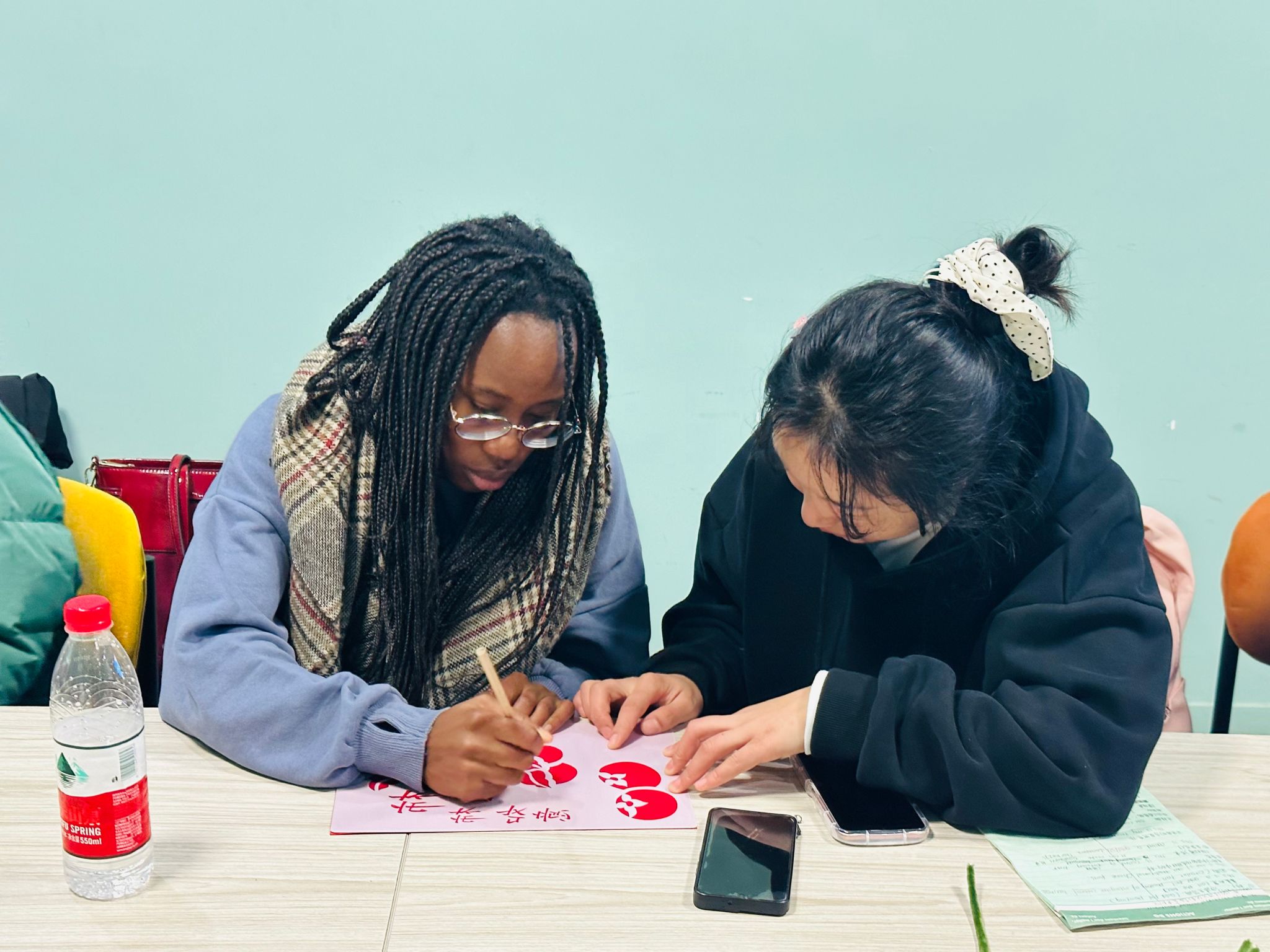 另外,本次活动特邀请到远景学院外籍英语教师Aihei(来自非洲)参与,其在体验金箔画制作的同时,分享了中非文化差异的独到见解,为活动增添了国际视野,促进了跨文化的深度交流与理解。在轻松愉悦的氛围中,Aihei老师不仅感受到了中国学生的热情好客,也深刻体会到了中华优秀传统文化的博大精深与包容性。
