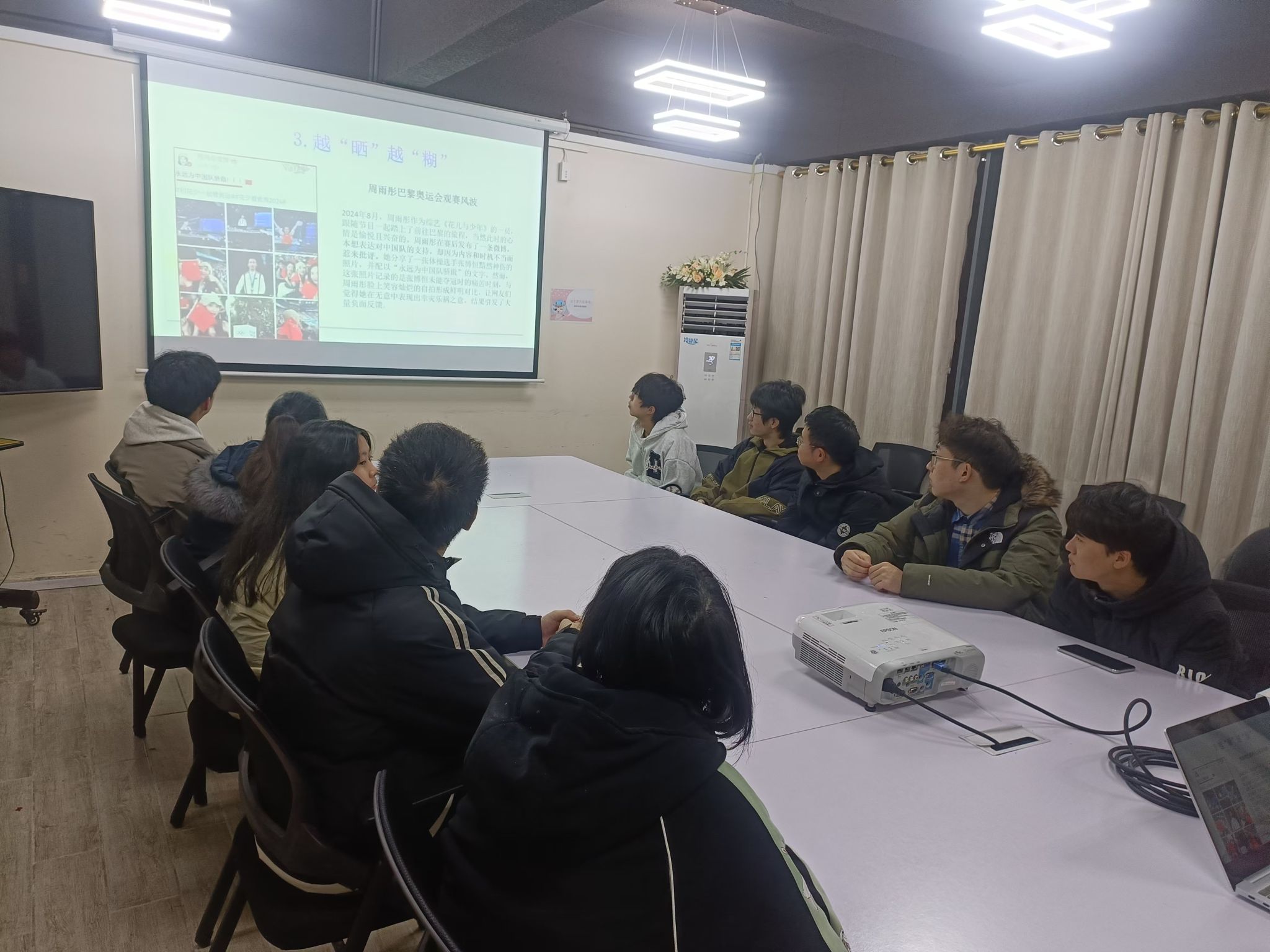 来自电子信息工程专业的张同学谈到:青年人在社交媒体上尽力塑造的完美仅仅是别人眼中的完美,青年人面对不同群体常常表现出不同的态度与心情,这是为了他人眼光而修饰之后的假象,已经偏离了记录生活、分享美好的初衷。毛光晨老师肯定了同学的发言,并指出:“晒”文化本身给青年带来多样的感官享受与体验,但是如果因为跟风模仿而走向过度修饰和泛化,难免会给人产生一系列消极影响,例如产生错误的价值导向、过度关注内容本身而忽视其安全性和私密性。