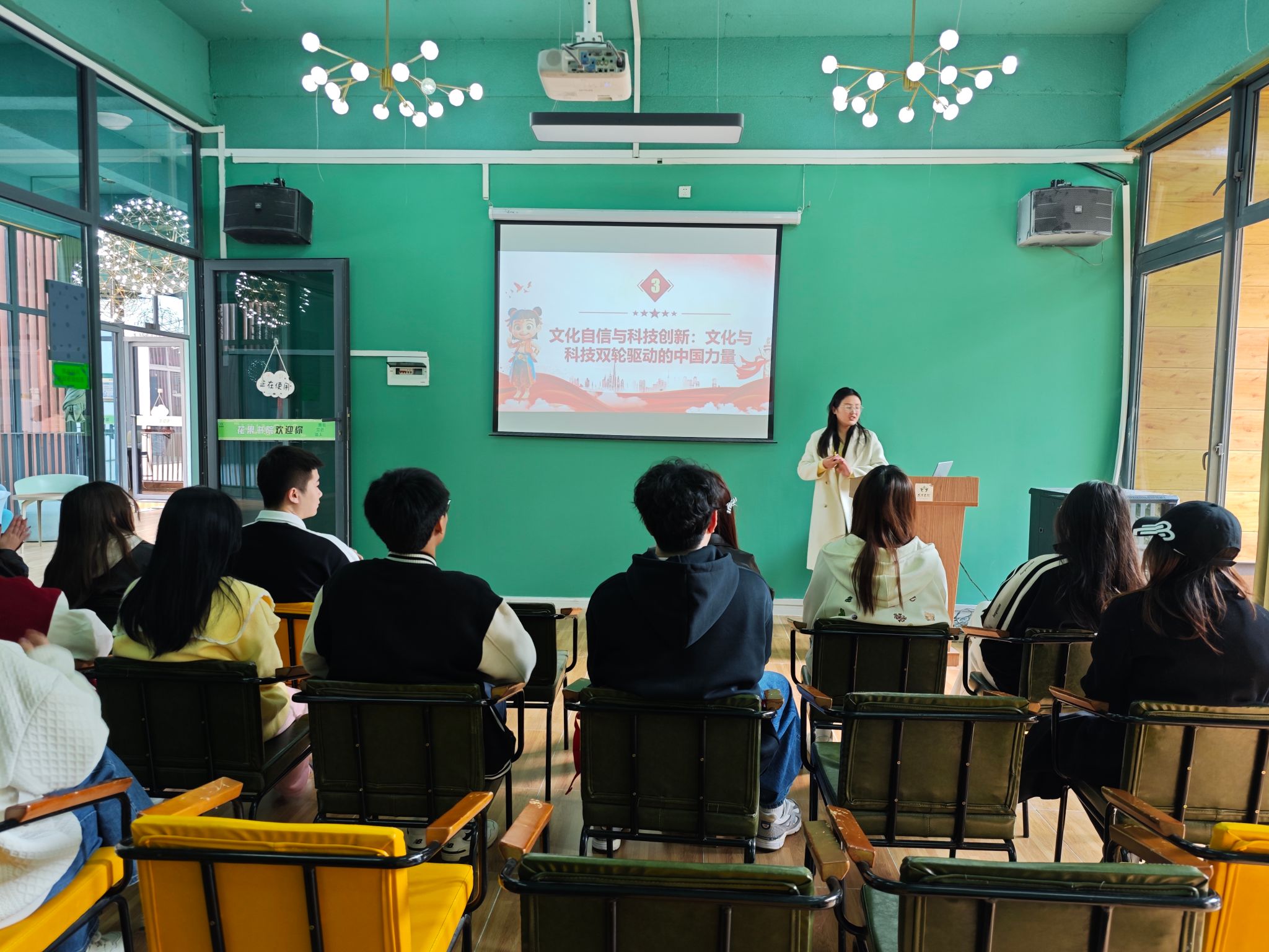 2025年3月12日下午四点,马克思主义学院“概论”课教研室联合花果书院,在花果书院多功能报告厅举办了以“感悟创新中国力量,创造更加美好明天”为主题的第74期“青春思索”主题沙龙活动。本次活动由马克思主义学院的杨文君和袁明君老师主持,来自各学院的二十多名学生积极参与。
