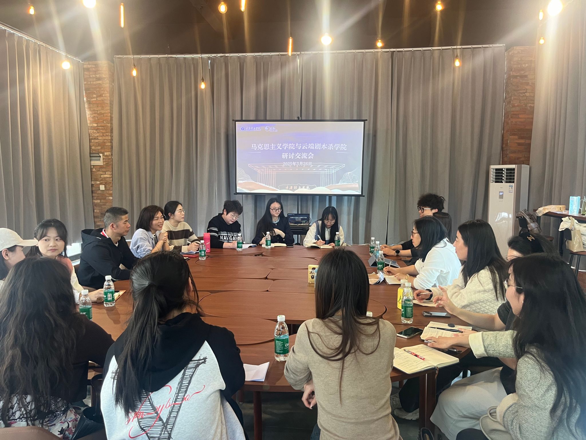 2025年3月26日,马克思主义学院与云端剧本杀学院于北校区廊桥苑开展了深度交流会,一起探索思想政治教育与剧本杀的跨界融合路径。马克思主义学院思想道德与法治教研室和云端剧本杀学院的全体老师们共同出席,会议由陈静老师主持。双方围绕课程共建、红色文化传播等议题展开研讨。