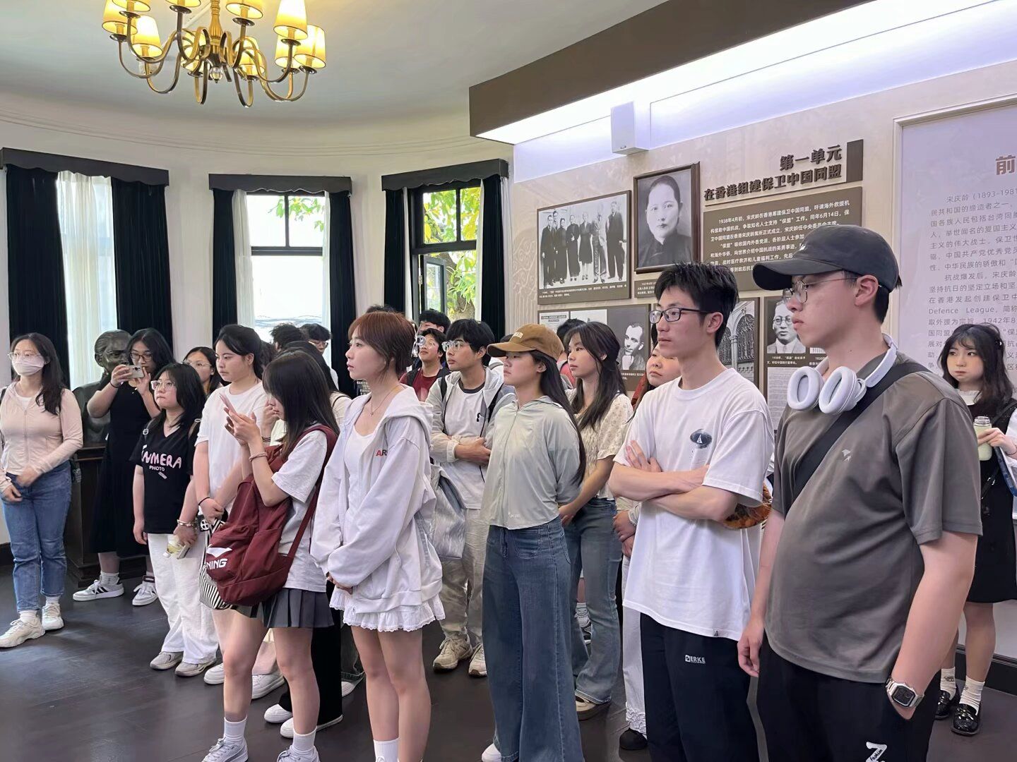 宋庆龄旧居陈列馆,是一处见证伟人风范与民族历史的重要红色遗址,是中华儿女在民族危亡之际凝聚共识、团结抗战的精神象征。进入展馆,师生一行跟随讲解员的步伐,依次参观了宋庆龄先生工作与生活的房间,聆听她坚定践行“三个必须”、大力支持抗日民族统一战线、为新中国成立奔走呼号的动人事迹。通过一张张历史照片、一件件实物展陈,师生们真切感受到这位伟大的民主战士、伟大的爱国主义者、伟大的国际主义战士所展现的坚定信仰与崇高人格。