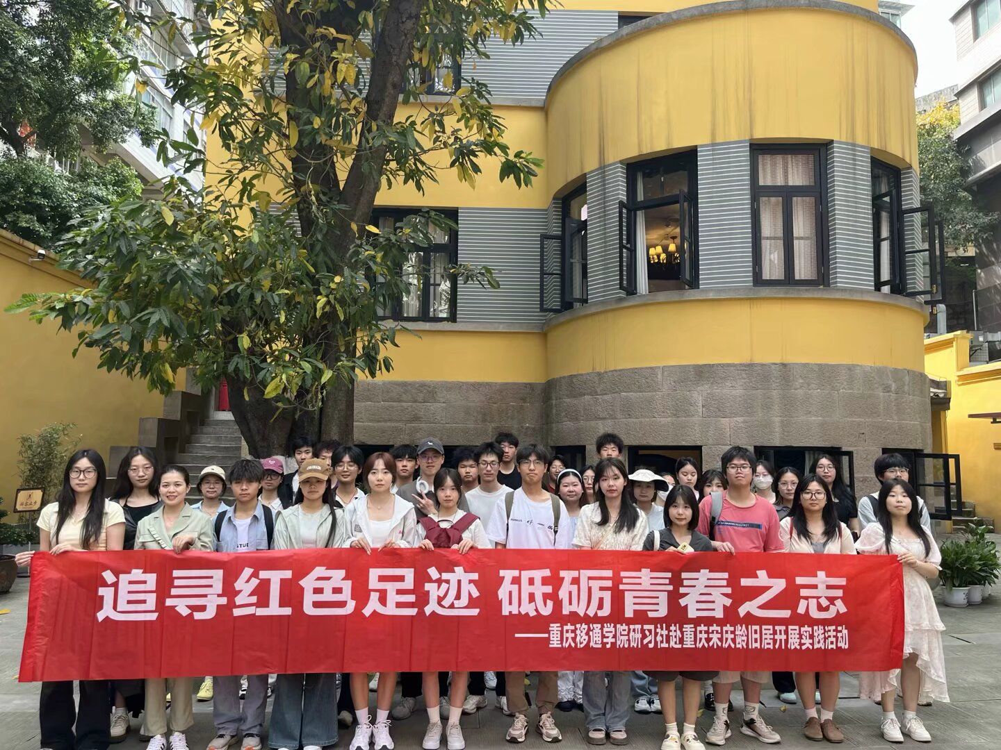 为推动“大思政课”建设走深走实,引导广大青年学子坚定理想信念、厚植家国情怀,4月16日13:00,马克思主义学院唐菊相、陈飞宇两位老师组织习近平新时代中国特色社会主义思想研习社近30名同学开展了“追寻红色足迹,砥砺青春之志”实践活动,前往重庆市宋庆龄旧居陈列馆和周公馆,实地感悟红色文化、赓续红色血脉、坚定初心使命。