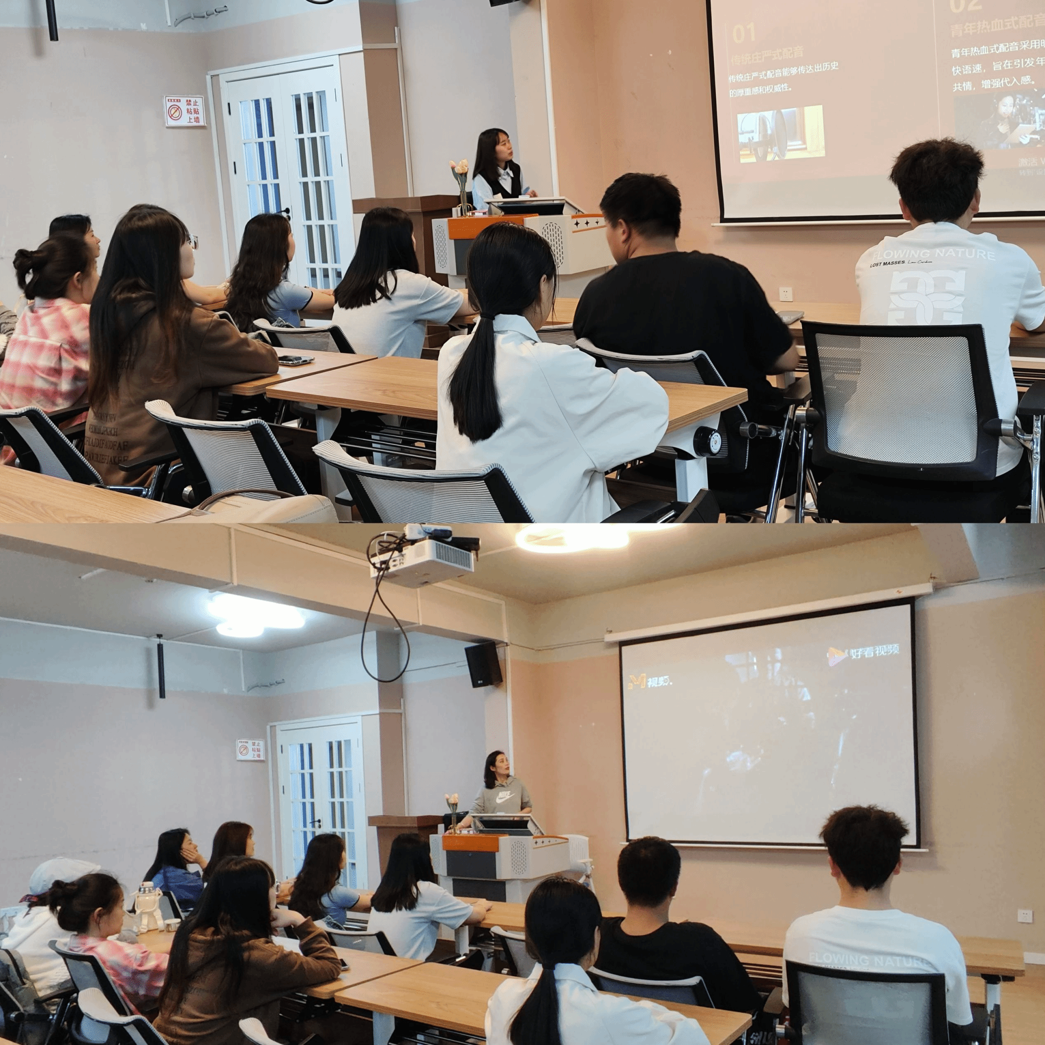 活动伊始,张璐老师阐述传统庄严式和青年热血式配音的差异。在红色经典影视中,音色与语调、语速与节奏、配音技巧三者相称相映,让人物更加丰满立体。唐翎月老师通过对比《觉醒年代》的原本配音版与大学生配音版,向学生深度解析两者的不同。无论是哪种版本的配音,背后都需要熟练运用配音技巧来精准表现不同的人物。