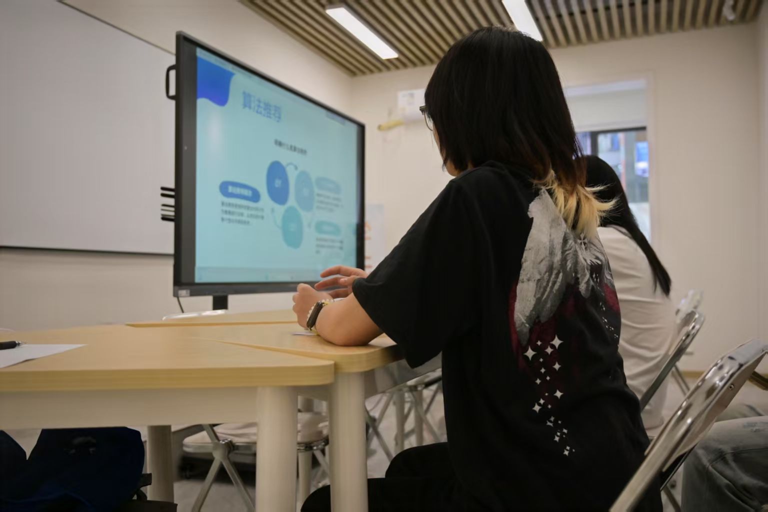 活动伊始,主讲人冉杉老师抛出问题:“一刷短视频,就停不下来,是你吗?一打开购物软件,就想买买买,是你吗?用久了音乐软件,听的歌曲都是同一类,是你吗?”引入主题,启发学生思考。紧接着,冉老师讲解到:大数据通过抓取用户的浏览时长、点赞评论等行为数据,构建个性化模型,实现“越用越懂你”的内容推送。她解释到:“算法推荐的初衷是优化用户体验,但过度依赖可能让人陷入‘信息舒适区’。”