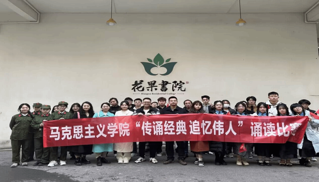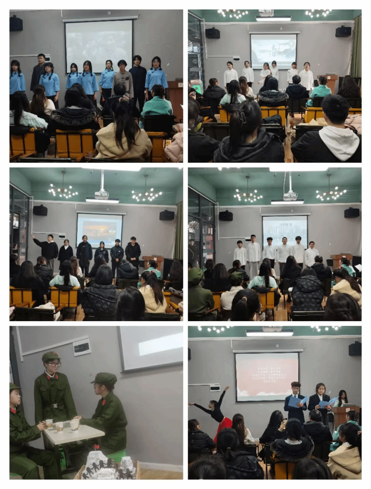 为全面推动新时代党的创新理论进教材进课堂进头脑,深入实施“大思政课”建设工程,坚持不懈用习近平新时代中国特色社会主义思想铸魂育人,切实增强学生对思政课的获得感,引导广大学生正确认识世界和中国发展大势,勇于担当时代责任和历史使命。缅怀一代伟人,追寻红色记忆,传承红色基因,弘扬革命精神。2023年12月6日下午3点,马克思主义学院中国近现代史纲要教研室在花果书院多功能活动室举办了“诵读经典 追忆伟人”比赛决赛。