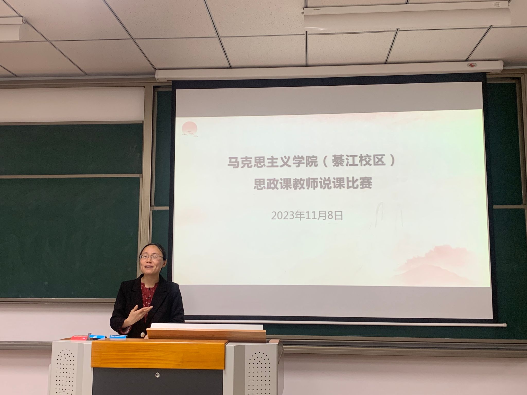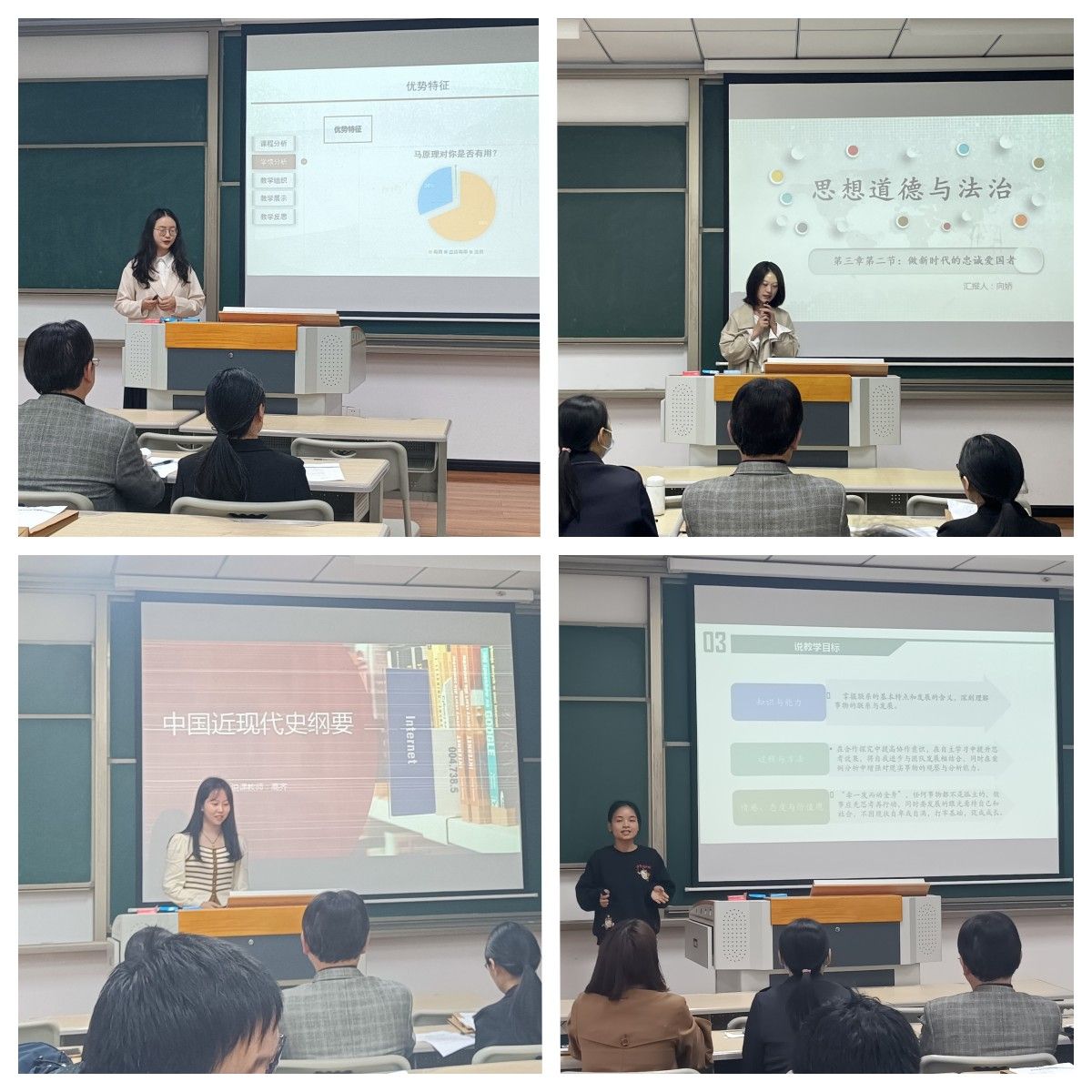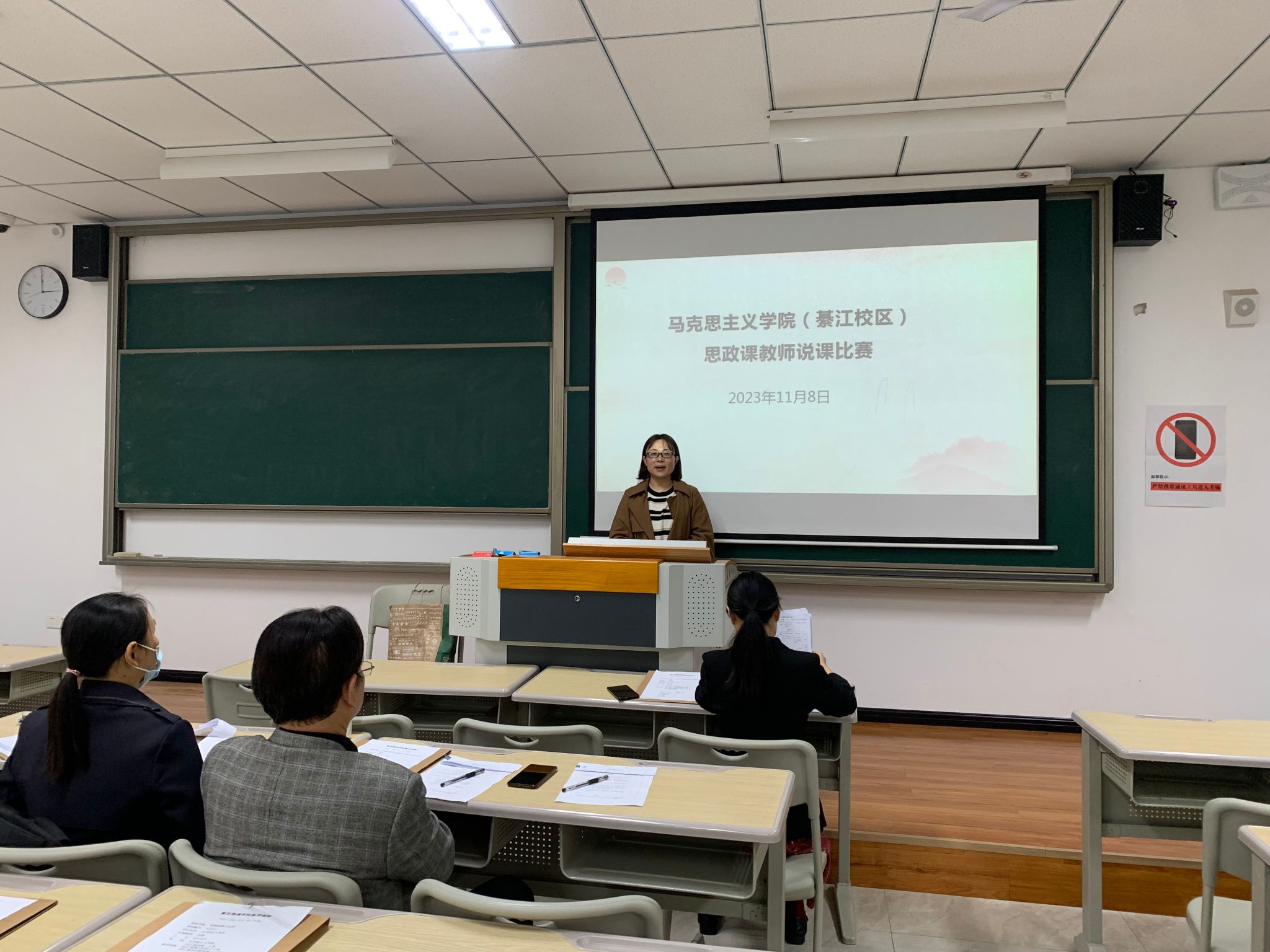 为提高思政理论课教育教学质量,提升思政理论课教师教学水平和教学能力,增强思政理论课教学的针对性、实效性和时代感,充分发挥高校思政理论课的主渠道作用。马克思主义学院(綦江校区)于11月8日下午在仁者楼308教室举行说课比赛。比赛由形势与政策教研室主任王郡主持。本次说课比赛的评委有綦江校区马克思主义学院副院长唐孝庆、形势与政策教研室主任王郡、校级督导刘晓村、院级督导陶辉和骨干教师潘家玲,马克思主义学院(綦江校区)全体教师参加。