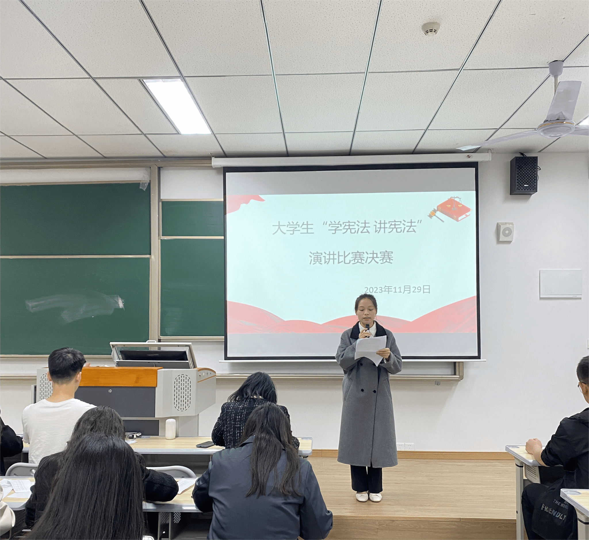 为深入开展宪法教育,进一步增强大学生法治观念,提高大学生法治意识和法治素养,培养大学生学法、知法、守法、用法、护法的自觉,2023年11月29日,重庆移通学院马克思主义学院(綦江校区)在仁者楼313教室举行大学生“学宪法 讲宪法”演讲比赛决赛。本次比赛由马克思主义基本原理教研室向娇、黄必琼老师组织,马克思主义基本原理教研室主任陈静副教授、黄秋燕、邹国辉、邱秀谦、贺铭钰、彭玉玲、刘玥阳等老师担任评委。