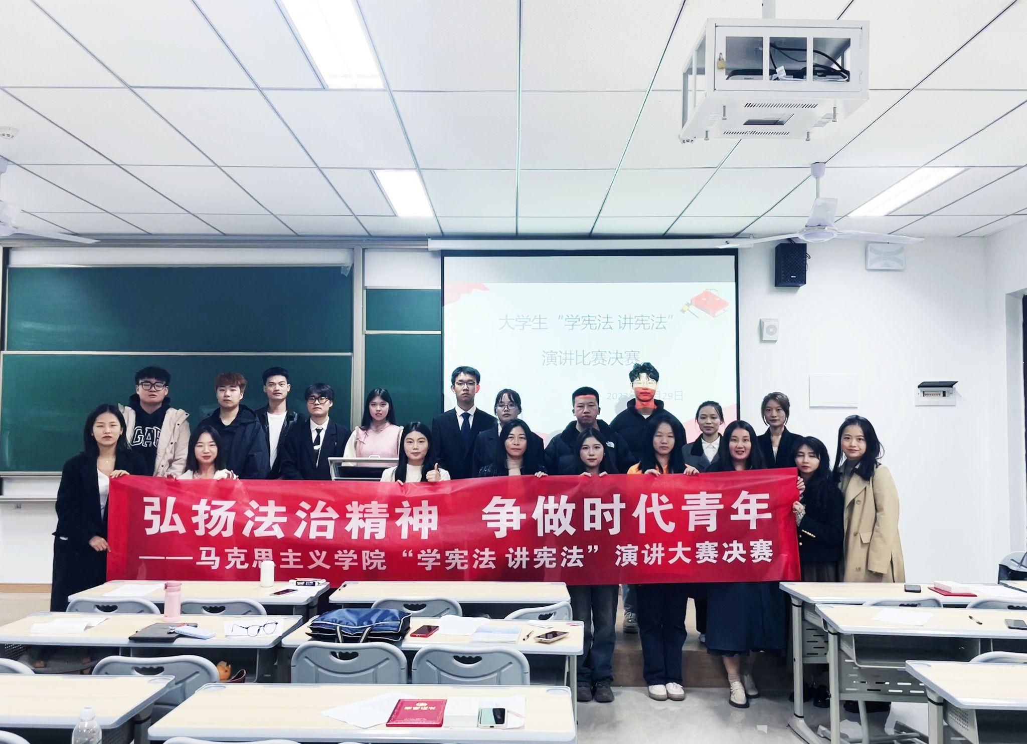少年不忘青云志,筑梦繁荣新时代。此次比赛为同学们提供了充分展现大学生精神风采和学宪法讲宪法的平台,进一步增强了大学生法治意识与法治观念,有效激励同学们在今后的学习中不断提升法治意识和法治素养,为法治中国建设贡献青春力量!