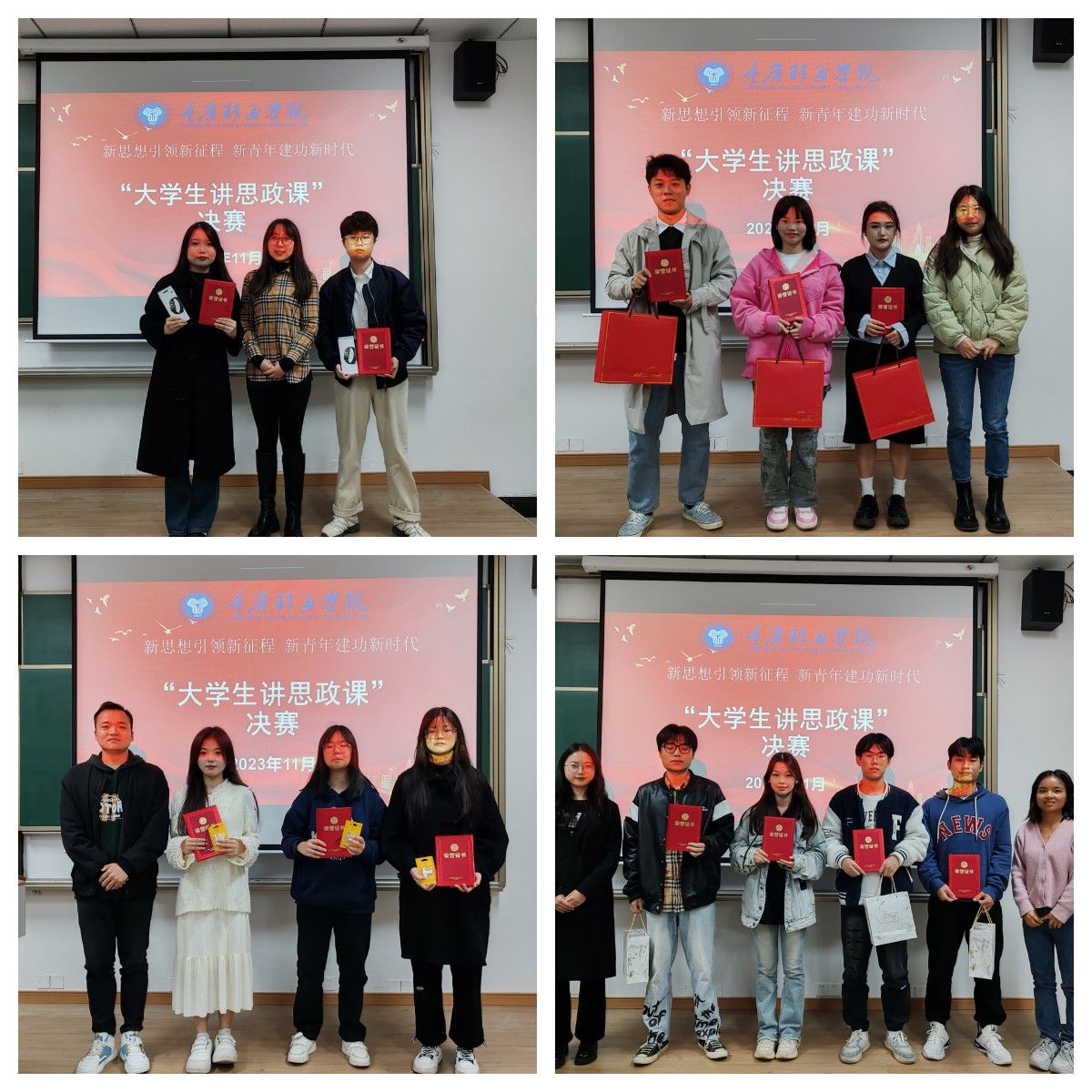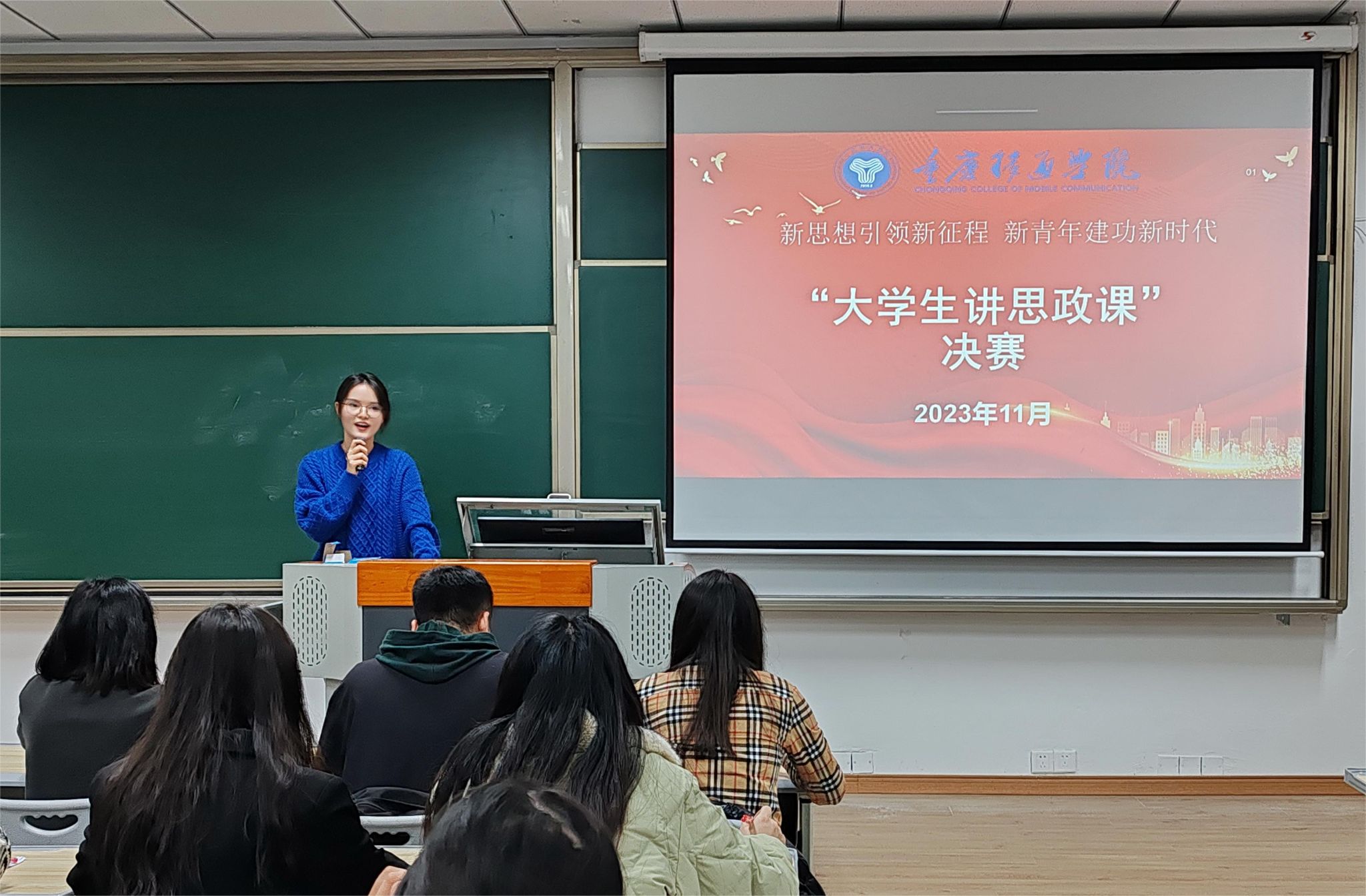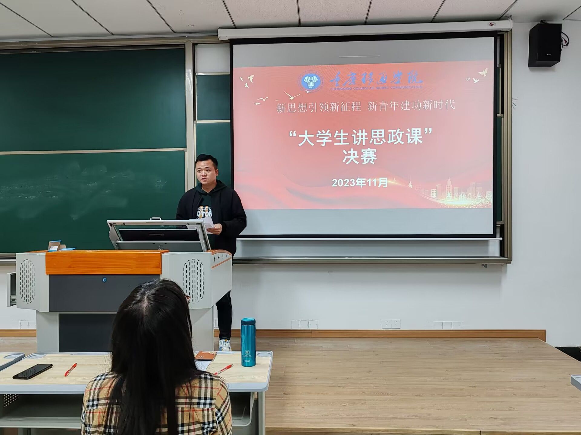 为坚持不懈用习近平新时代中国特色社会主义思想凝心铸魂,深化思政课改革创新,推进“大思政课”建设,拓展大学生参与思政课实践教学途径,用新时代十年伟大变革的生动实践把道理讲深、讲透、讲活,不断提高思政课的针对性和吸引力,引导学生厚植爱国主义情怀,坚定不移听党话、跟党走,重庆移通学院马克思主义学院(綦江校区)特举行以“新思想引领新征程 新青年建功新时代”为主题的大学生讲思政课展示活动。在马克思主义学院(綦江校区)的组织下,大学生讲思政课比赛决赛于11月29日下午在仁者楼314顺利举行。比赛由马克思主义学院陈沛珊主持。本次比赛邀请马克思主义学院程辉、陈安鹏、郝月霜、叶合柳、张思璐、樊高萌教师担任评委,学生代表全程观摩比赛。